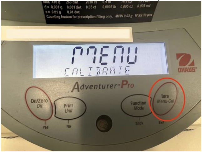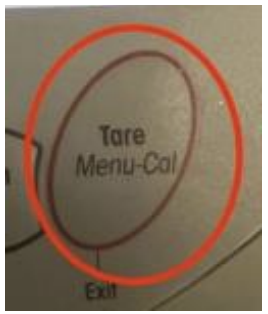 9. Press and hold Tare. Upon release, the Menu will appear on the balance display with Calibrate underneath.